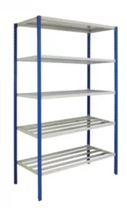 ![]() | Le rayonnage en acier galvanisé : ce rayonnage de type semi-lourd est conçu pour supporter un poids entre 170 et 200 kg environ par tablette. Sa structure en acier galvanisé lui permet de ne pas rouiller. |