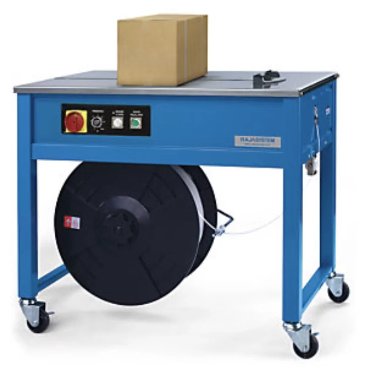 ![]() | La cercleuse semi-automatique pour palettes permet de cercler jusqu’à 50 palettes basses (hauteur minimum : 380 mm) par jour. Le bras de la machine vient passer le feuillard automatiquement sous la palette – l’opérateur n’ayant plus qu’à apposer la chape et à couper la bande de cerclage. |