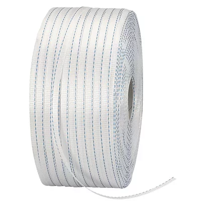 ![]() Feuillard textile | – Cerclage de marchandises dont la surface est fragile (comme les produits en bois) – Cerclage d’objets à coins saillants ou pointus (comme le carrelage) |