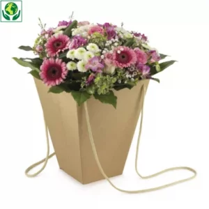 |  | Le cône kraft avec poignée pour bouquet, très résistant à la déchirure, permet de transporter vos bouquets de fleurs de manière sécurisée jusqu’à leur arrivée en main propre. |