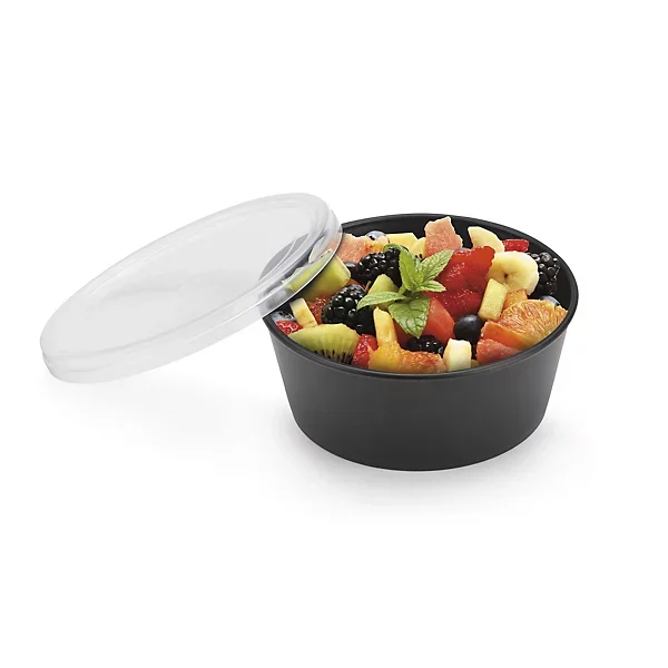 ![]() | La boîte ronde en carton présente un design moderne et valorisant, tout en sécurisant le transport de vos aliments grâce à son couvercle en plastique RPET. |