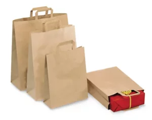 ![]() | Le sac kraft brun et blanc à poignées plates est un indispensable de l’emballage. Il permet de transporter des cadeaux facilement pour un faible budget et de garder la surprise jusqu’au dernier moment. |