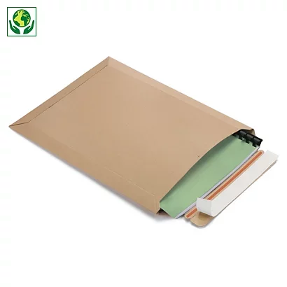![]() | La pochette carton micro-cannelé rigide brune à fermeture adhésive, rigide et protectrice, est conçue à partir de caton 60 % recyclé et totalement recyclable. |