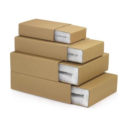 ![]() | La boîte fourreau brune avec calage mousse recyclée est la solution idéale pour protéger vos produits les plus fragiles avec un emballage robuste. |
