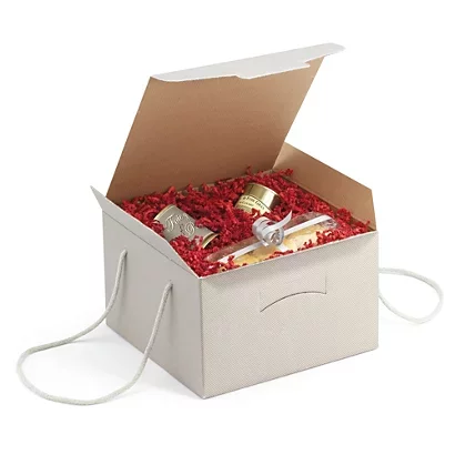 ![]() | Une boîte avec poignées intégrées pour transporter aisément votre produit à l’issue de votre événement ou à la sortie de votre boutique. |