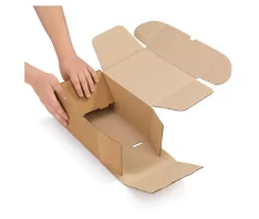 ![]() | La boîte en carton brun avec fermeture latérale est conçue avec 70 % de carton recyclé. |
