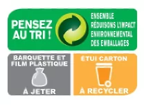 ![]() | La boucle de Möbius est un pictogramme indiquant que l’emballage est potentiellement recyclable, sous réserve que celui-ci soit jeté dans le dispositif de tri associé. |